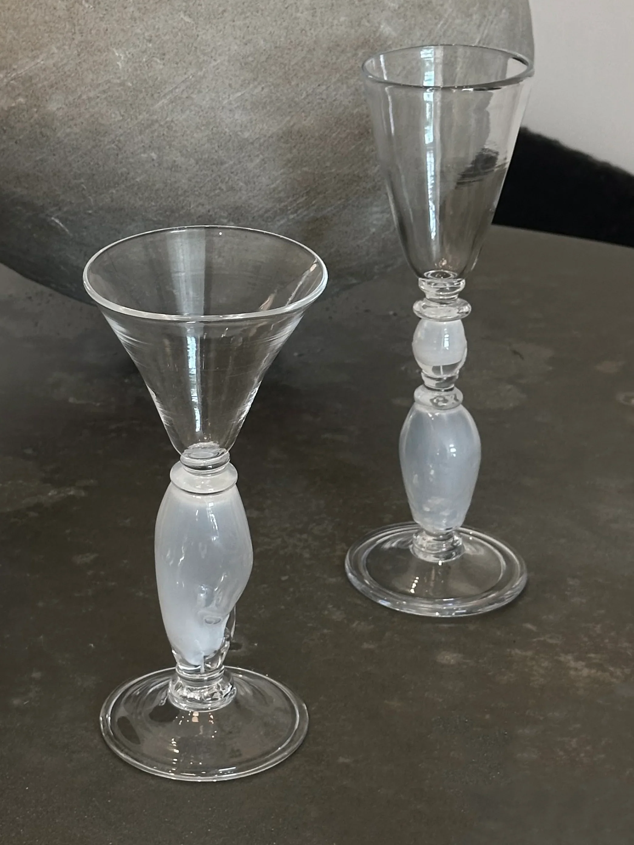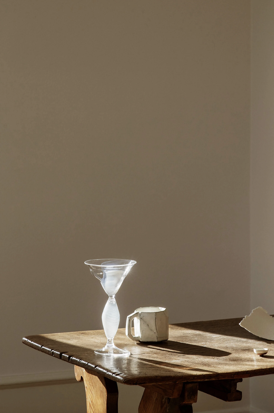 The Opaline Goblets are all a serie of unique mouth-blown glasses, inspired by old venetian techniques. They’re all shaped and formed individually. They’re made in clear glass With a touch of opaline, which is a translucent dance between the light and the glass itself. The purpose of the goblets are made for celebrating either bubbles, flowers or just to have it as a nice object for your home.